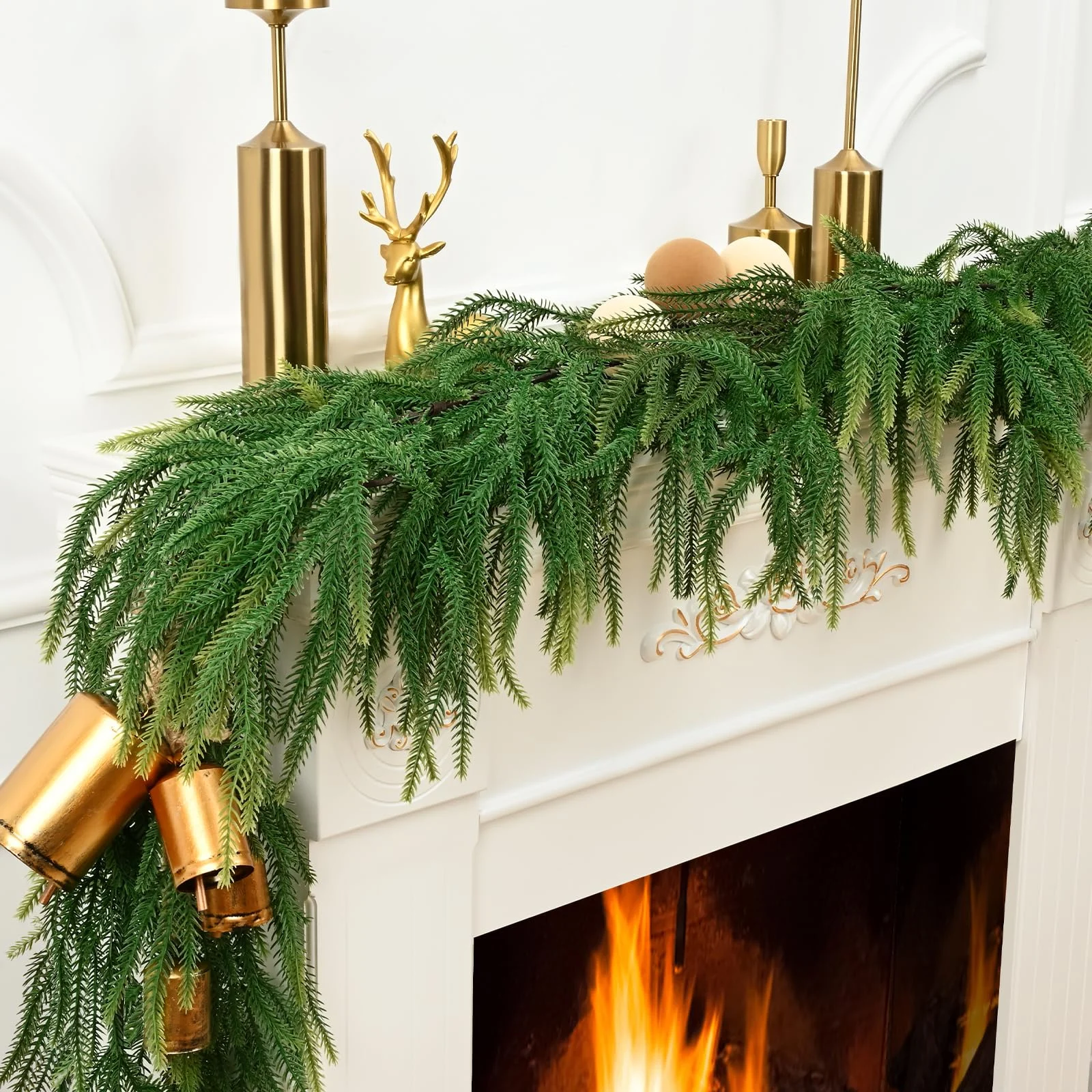 5.9FT Real Touch Norfolk Pine Christmas Garland for Mantle Decor