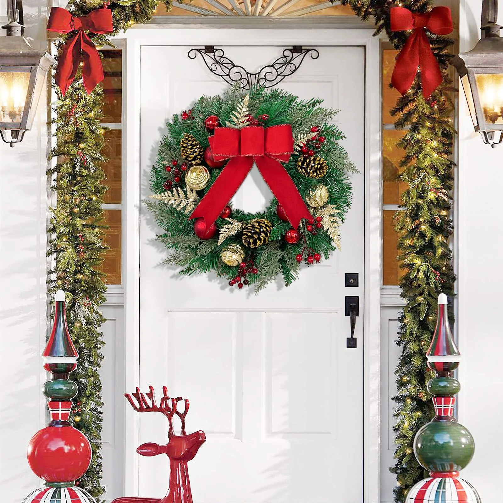 Ideal as a front door wreath, offering a warm, festive welcome to guests