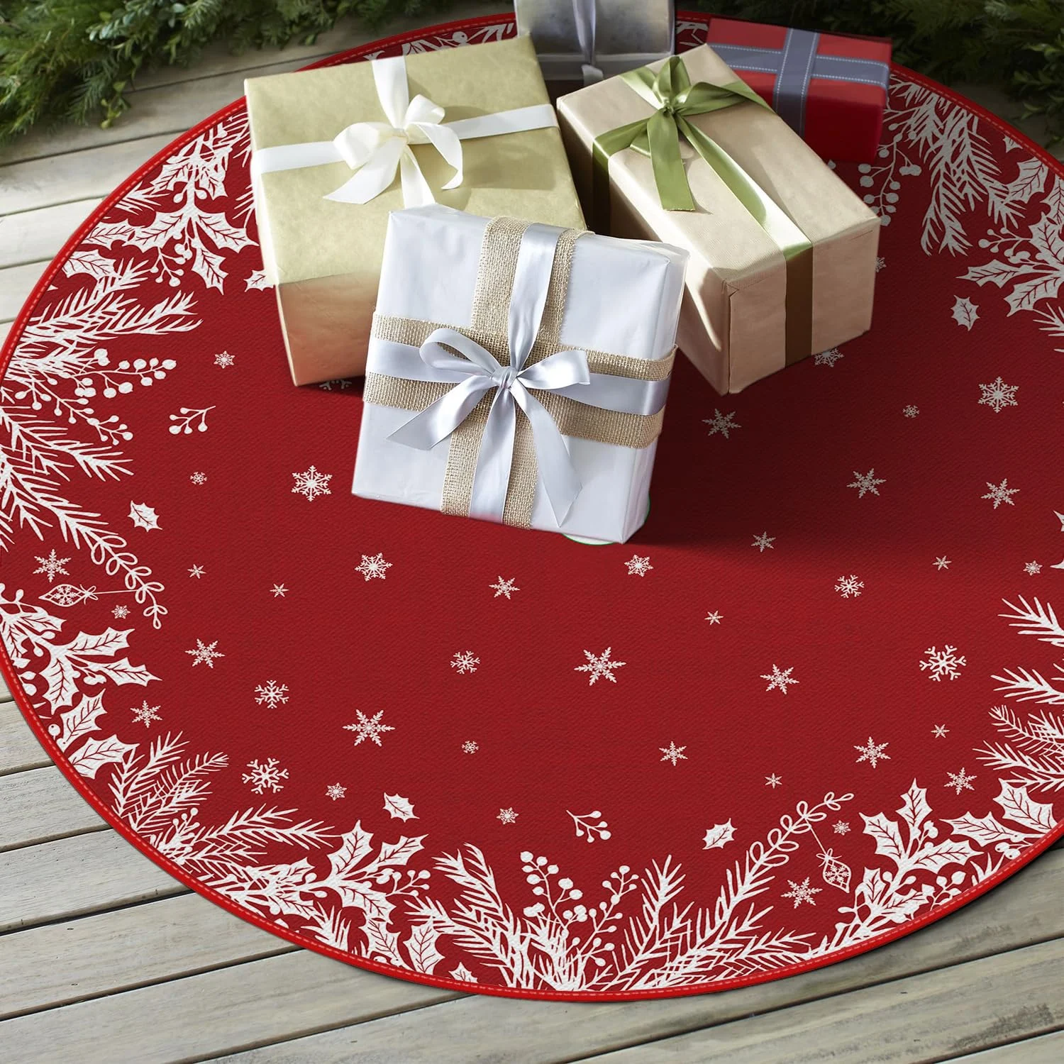 Center Pattern: The inner area of the skirt is scattered with small white snowflakes, creating a gentle transition from the border to the base of your Christmas tree.