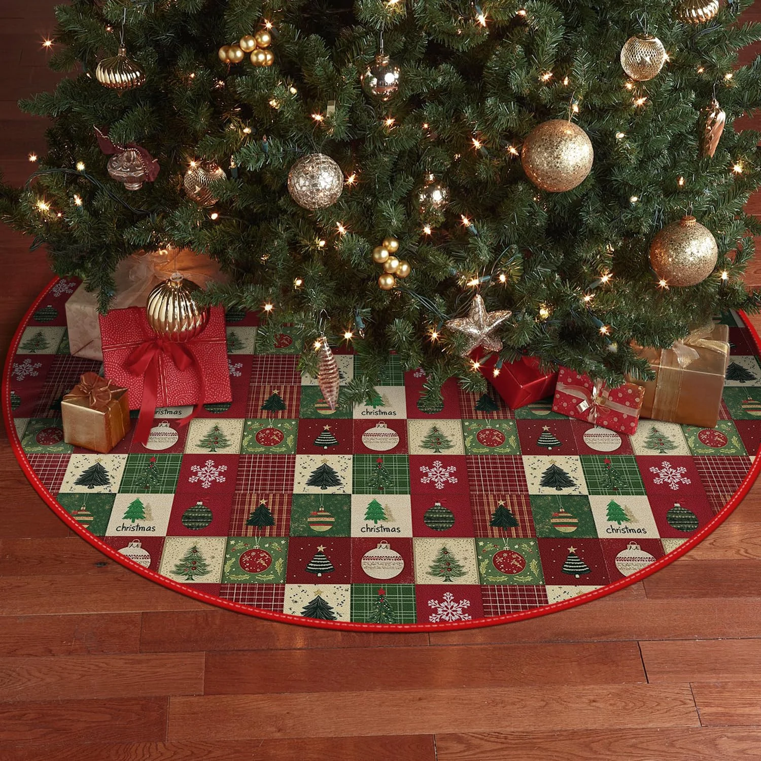 Holiday Squares Patchwork 48 Inch Christmas Tree Skirt