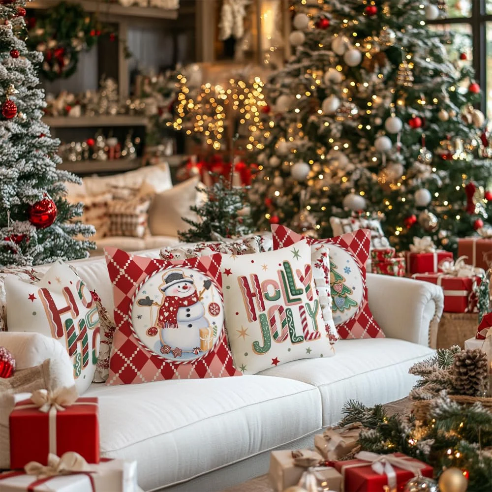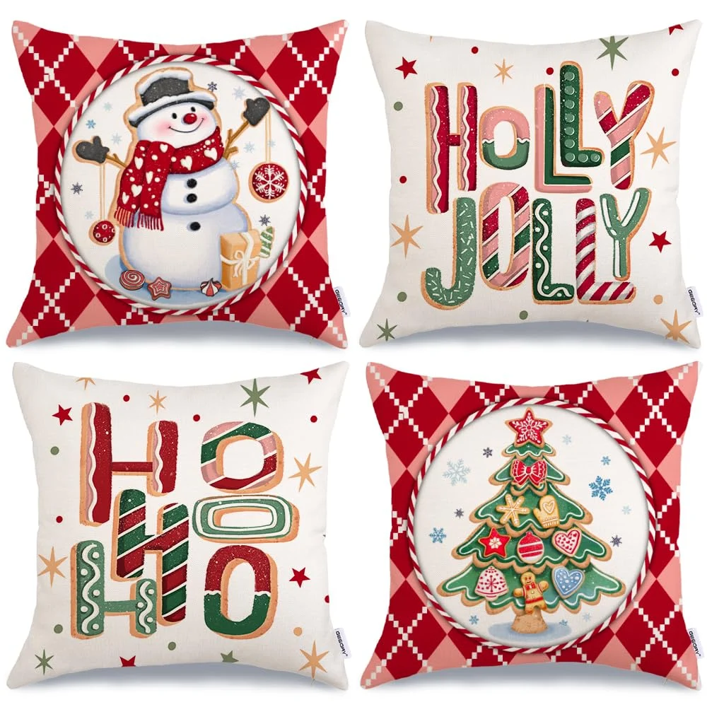 Bring the sweet and joyful spirit of the holidays into your home with this charming set of 4 Christmas pillow covers, inspired by adorable gingerbread cookies!